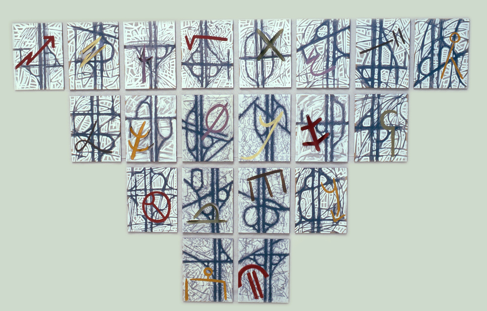 20-teilige Wandarbeit; auf der Rückseite nummeriert 1-20....