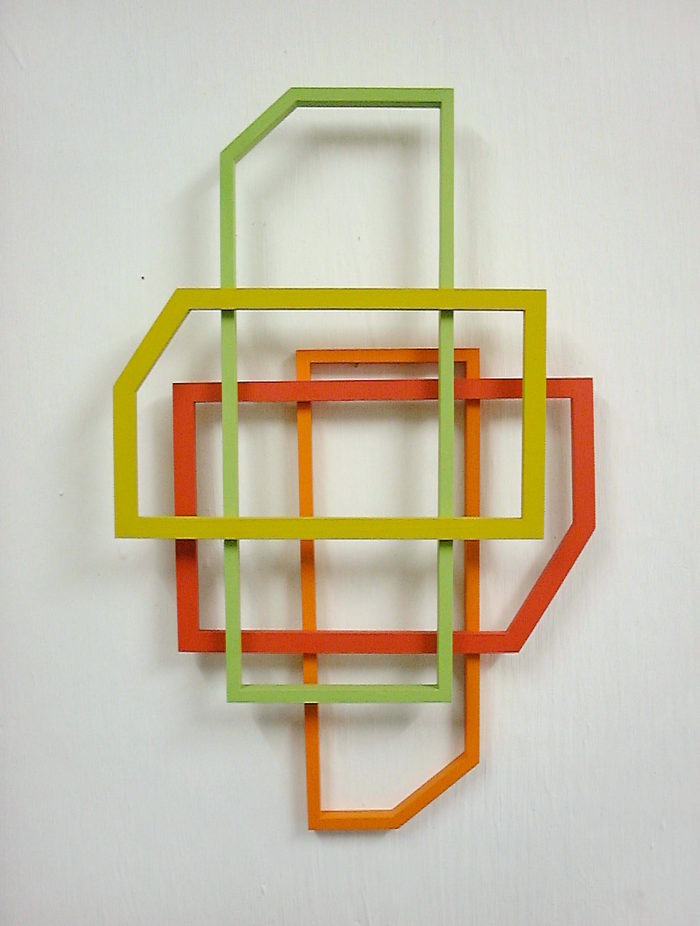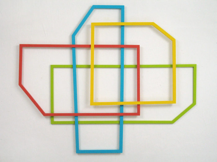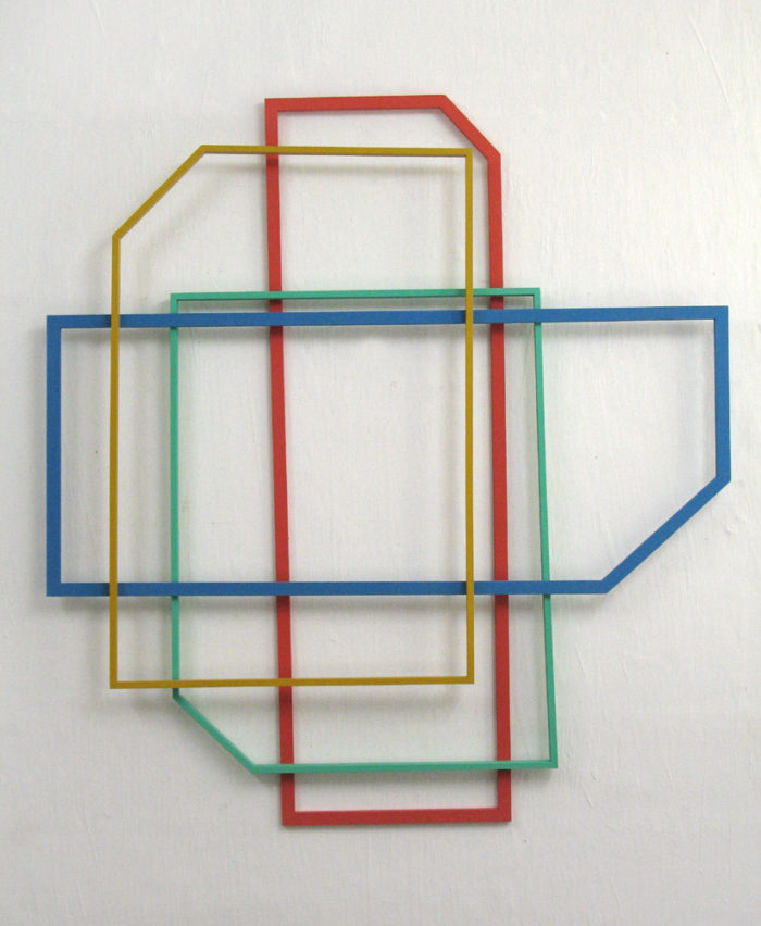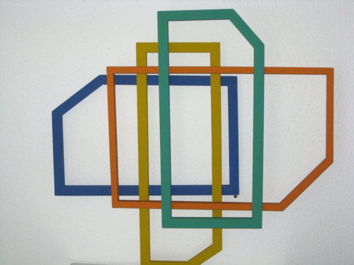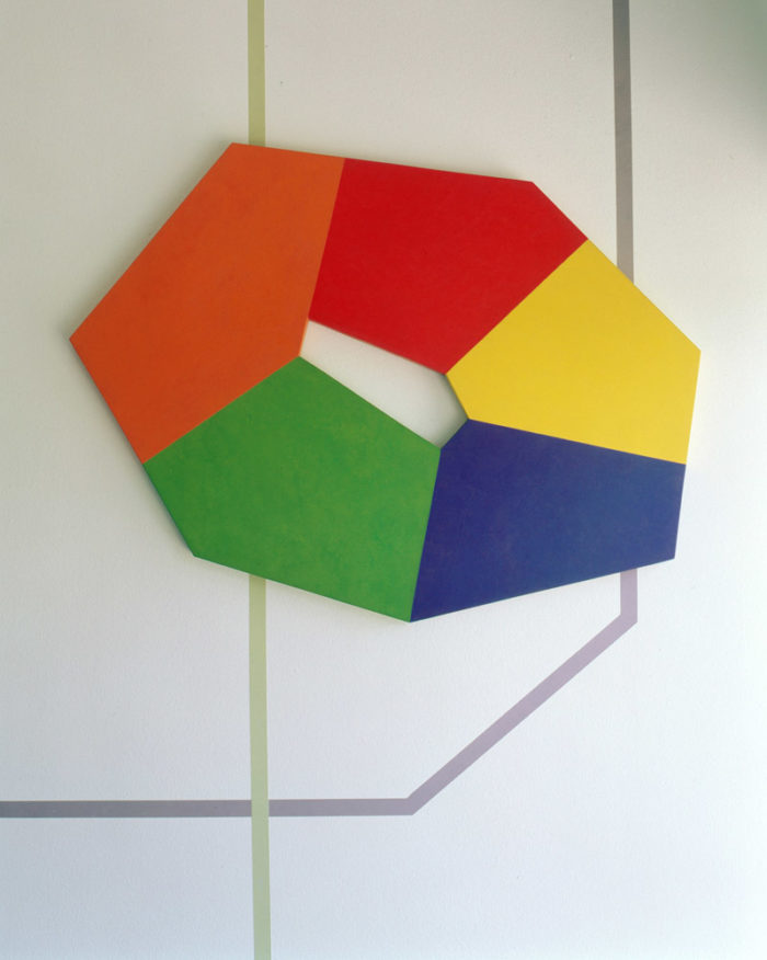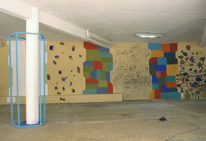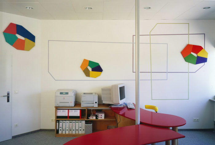 Installation – Drei Objekte auf linearer Wandmalerei – Praxis H. Fahrenholz, München