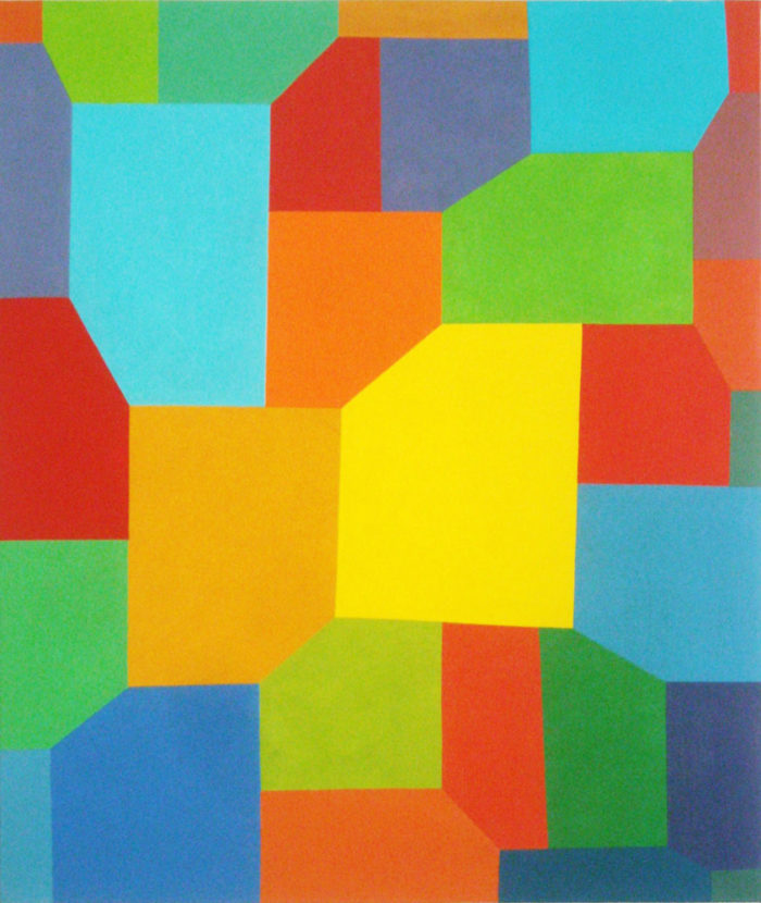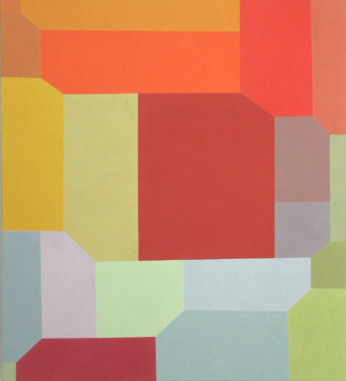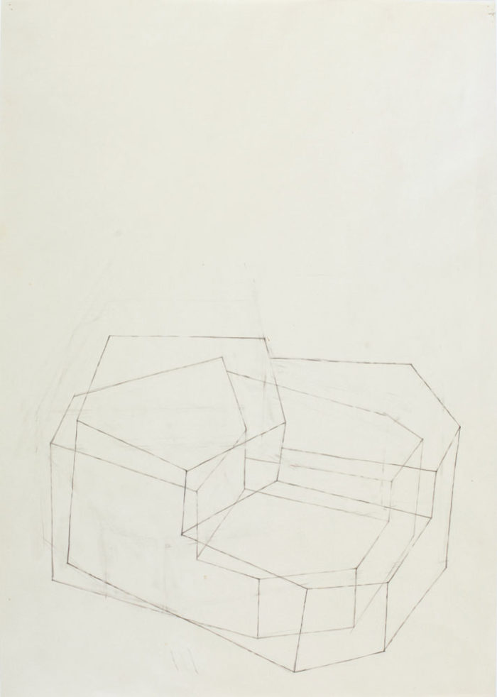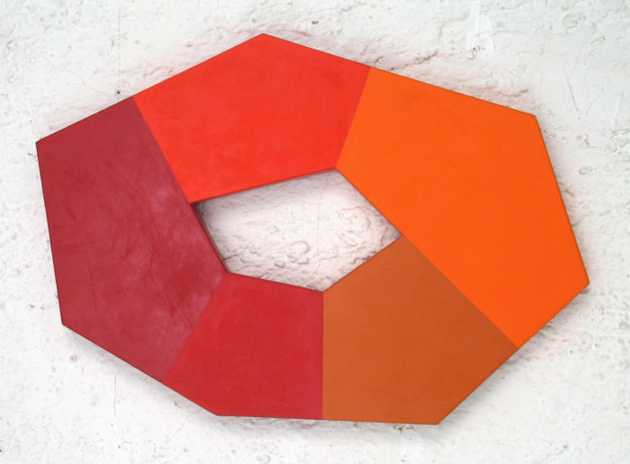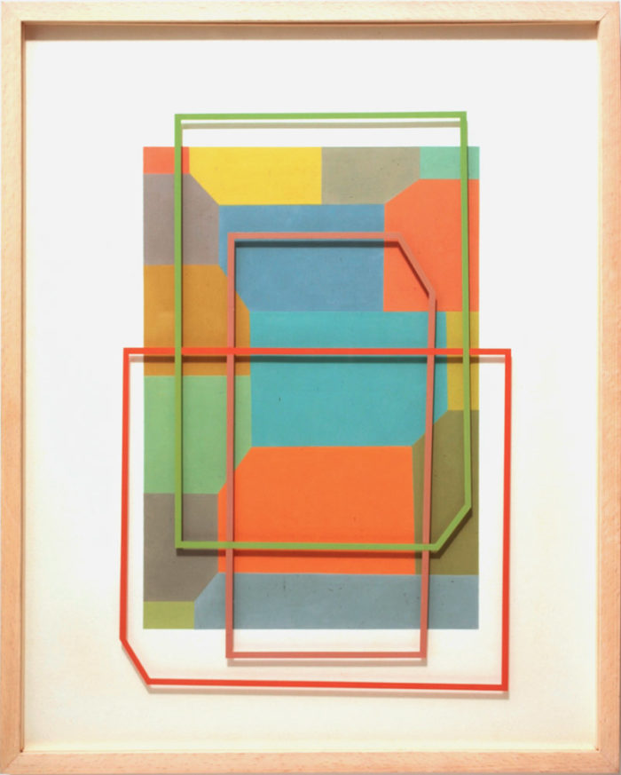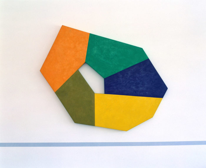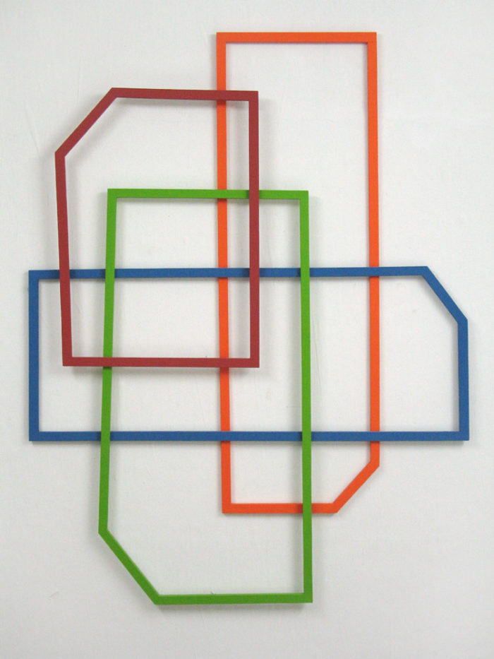 Installation – Drei Objekte auf linearer Wandmalerei – Praxis H. Fahrenholz, München