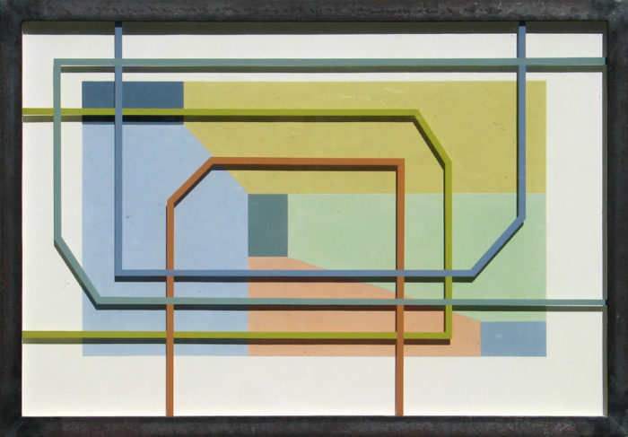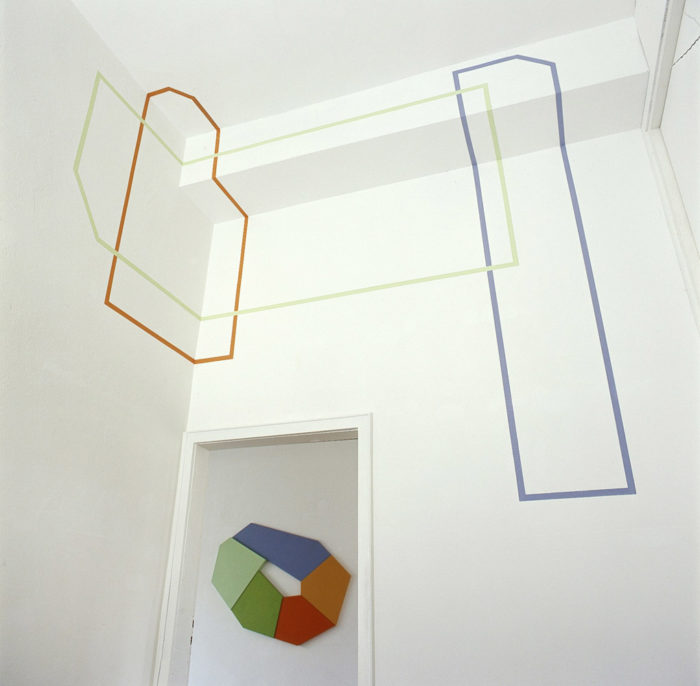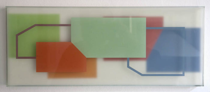 „LICHTBILD“ – Wettbewerb Gymnasium Markt Indersdorf; Konzept für 16 unterschiedlich große, farbige, in langsamem Rhythmus geschaltete lichtplastische Plexiglaskörper über einer Wasserfläche; (Modell)2001/032 A